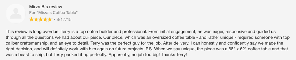 This huge coffee table is made to order and no two are identical. Woods that are used in the one will be maple. This can be stained the color shown.